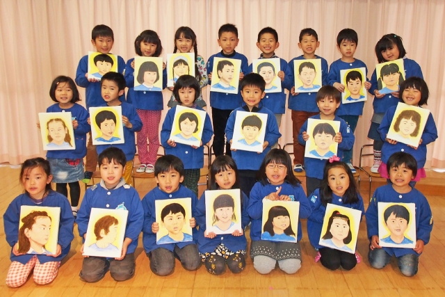 若月さんが卒園児一人ひとりに描いた似顔絵=北条保育園 (2015/03/26)