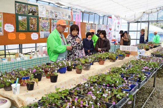 白や紫、ピンクのかれんな花が咲いている雪割草祭り=28日、市内西山町の「大崎雪割草の里」 (2015/03/28)
