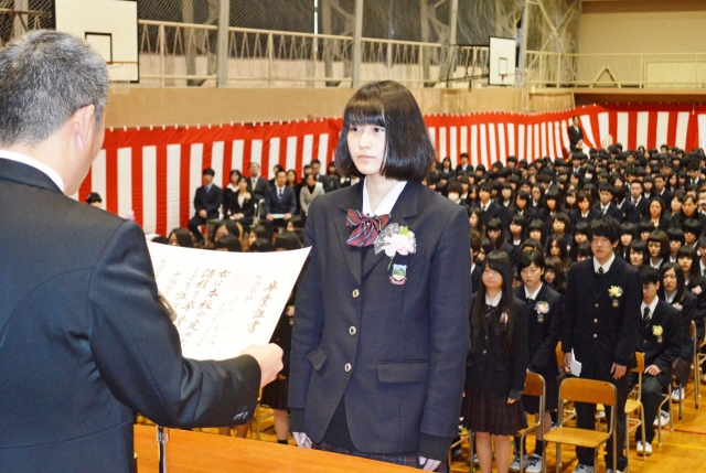 卒業証書を受ける各クラス代表=3日午前、柏崎総合高体育館 (2015/03/03)