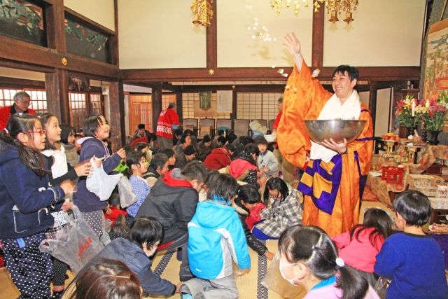 大勢の家族連れが健康を願った真光寺のだんごまき (2015/02/17)