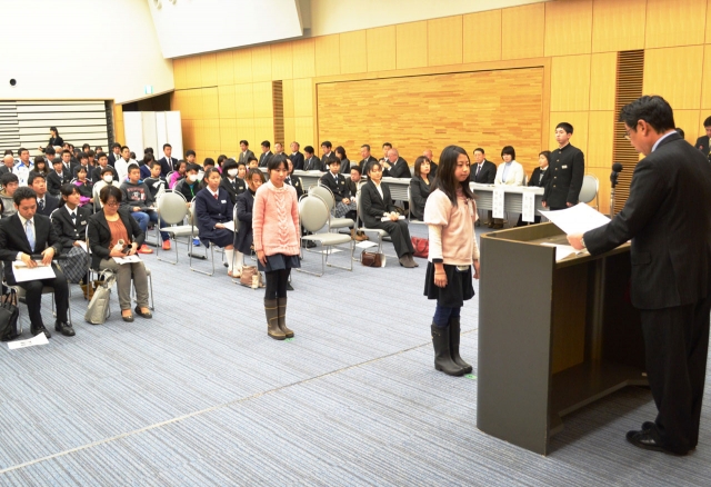 1年間の活動成果をたたえた教育委員会表彰=13日、市民プラザ (2015/02/18)