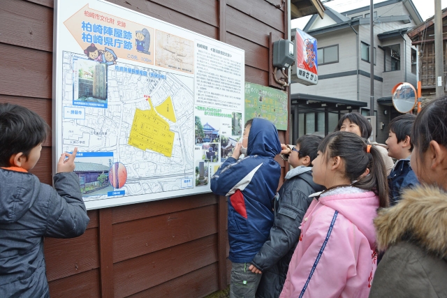 柏崎陣屋跡・柏崎県庁跡を示す看板=24日、市内大久保2 (2015/02/25)