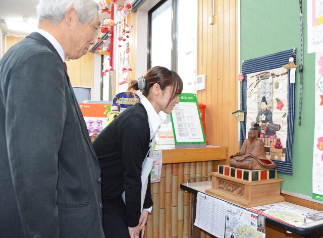 会期を延長して展示されている天神様像=刈羽村の刈羽郵便局 (2015/02/05)