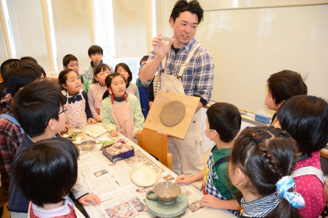 人気を集めた子ども体験講座の陶芸。小学生が茶わん、皿作りに取り組んだ=市民プラザ  (2015/01/16)