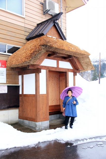 高柳町荻ノ島にお目見えしたかやぶき屋根のバス待合所 (2015/01/20)