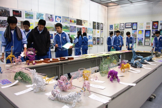柏崎刈羽の小・中学生の力作がずらりと並んだ美術展=27日、ソフィアセンター (2014/11/27)