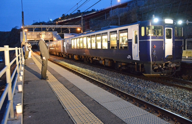 年内最終便をキャンドルの明かりでもてなしたJR青海川駅=30日 (2014/12/01)