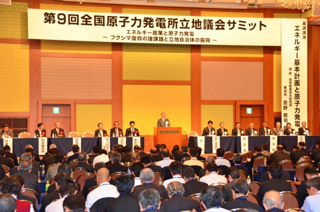大勢の議員が参加した全国原発立地議会サミット=18日、東京・港区の品川プリンスホテル (2014/11/19)