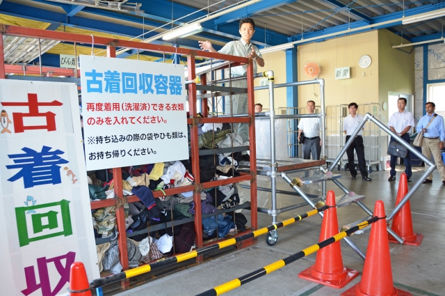 リサイクルセンター内に設けられた古着回収用のケージ=31日、市内松波4のクリーンセンター内 (2014/08/01)
