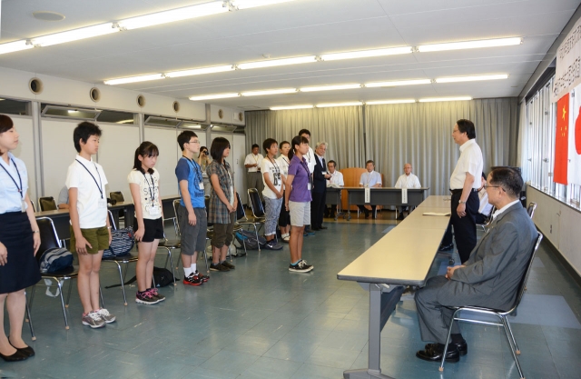 会田市長に誓いの言葉を述べる中学生訪問団=2日午前、市役所大会議室 (2014/08/02)
