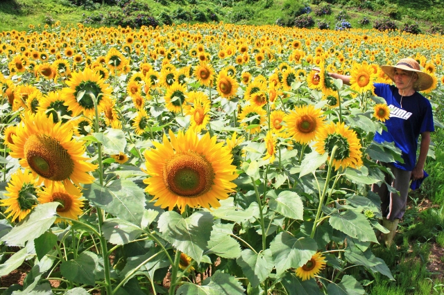 2000本のヒマワリが見頃となった大角間のアグリパーク (2014/08/06)