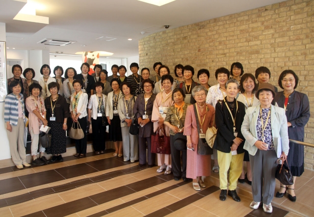 入館5千人目となった県退職女性校長会「まさご会」の一行=ドナルド・キーン・センター柏崎 (2014/06/27)