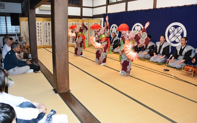 優雅な舞台を楽しんだ綾子舞の上演。この後、ホタル観賞が行われた=28日、市内鵜川の綾子舞会館 (2014/06/30)