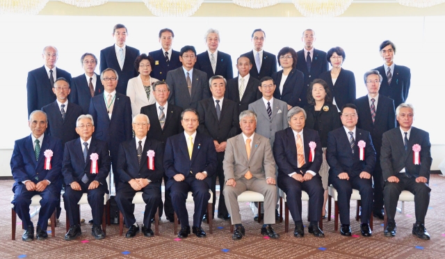 本年度の市功労者表彰を受けた人たちと関係者=1日、市内番神2の岬ひとひら (2014/07/02)