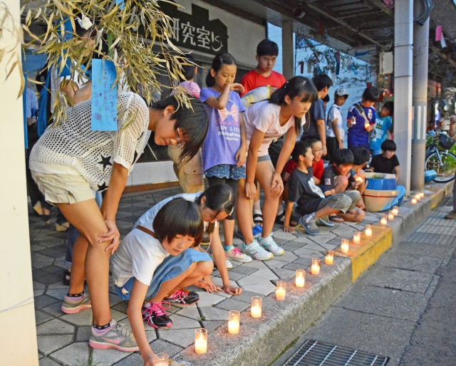 手作りのキャンドルで商店街を彩った七夕イベント=6日夜、ニコニコ通り商店街 (2014/07/07)