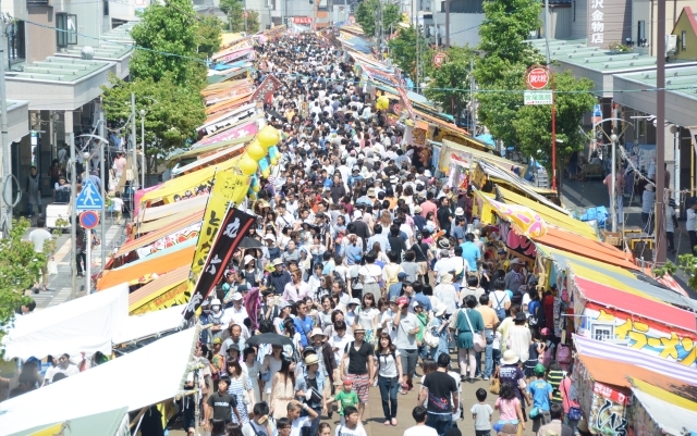 終日、人の波が切れなかったえんま市=15日午後1時半ごろ、市内東本町1 (2014/06/16)