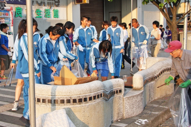 一中生徒会の呼び掛けで、保護者、地域の人らも参加して行われた「えんま市清掃」=17日午前5時半ごろ (2014/06/17)