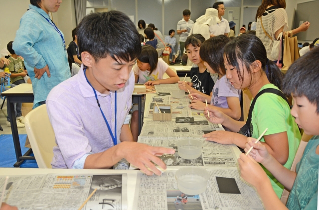 大勢の家族連れらでにぎわった科学の祭典=21日、新潟工科大 (2014/06/23)