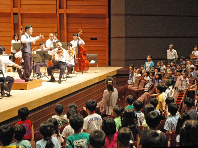 オーケストラの演奏に合わせて「ビリーブ」を合唱する児童ら=アルフォーレ・大ホール (2014/06/26)