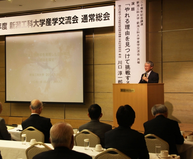 工科大20周年記念で講演する川口淳一郎さん=15日、ホテル日航新潟 (2014/05/17)