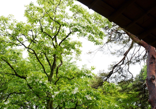 雪のように真っ白い花をつけた「なんじゃもんじゃ」の木。今週末ごろが見頃になりそうだ=23日、飯塚邸 (2014/05/23)