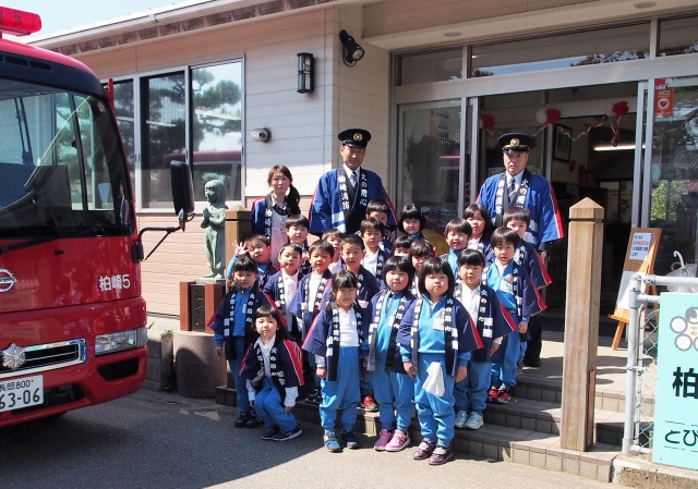 「火の用心」を呼び掛けた幼年消防クラブ=14日、柏崎中央幼稚園 (2014/04/16)