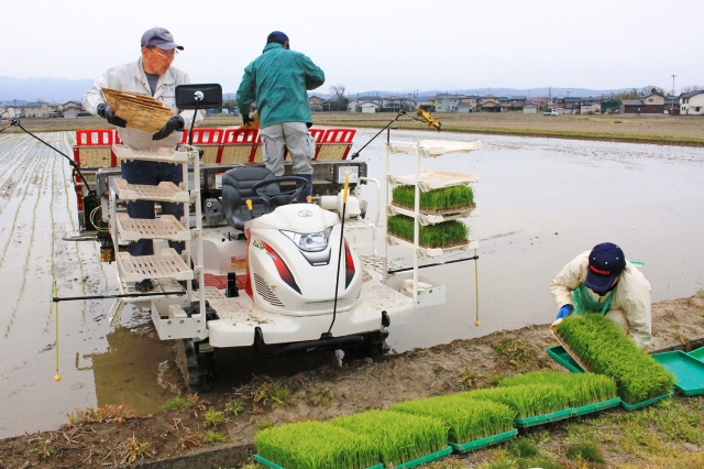 今年もスタートした早期栽培越路早生の田植え=市内上藤 (2014/04/18)