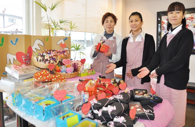 バレンタインデーを前に、ホットな商戦を繰り広げる菓子専門店=市内穂波町 (2014/02/10)