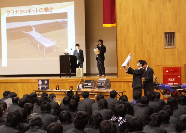 1年間の課題研究の成果を熱心に発表する3年生=22日、柏工 (2014/01/24)