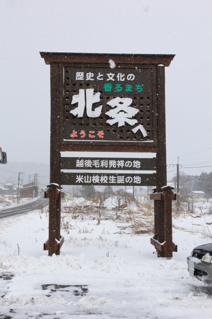 中越地震復興祈念の「北条ふるさと看板」。このほどリニューアルされた (2014/01/28)