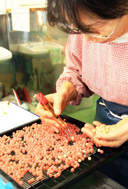 これからピークを迎えるサケの検卵作業=柏崎さけのふるさと公園 (2013/12/21)