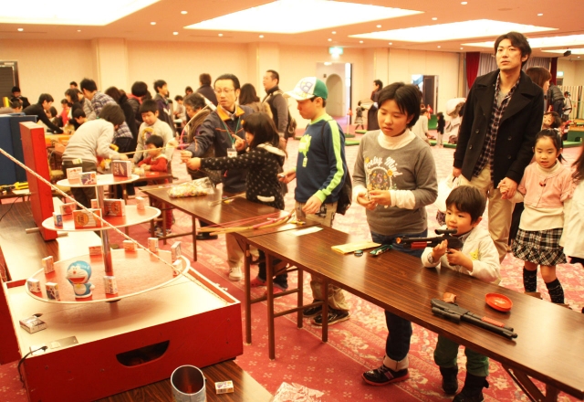 被災者のクリスマスで射的などゲームを楽しむ子どもたち=23日、メトロポリタン松島 (2013/12/24)