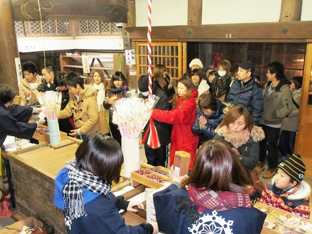 家族連れなどが大勢参拝に訪れた番神堂=1日午前0時ごろ (2014/01/04)