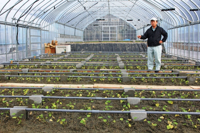 3棟目の栽培用ハウスが完成し、苗の植え付けが行われた「日本海 石地わさび園」=市内西山町大崎地内 (2013/11/20)