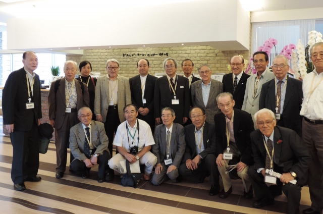 ドナルド・キーン・コロンビア大名誉教授を真ん中に記念写真におさまった柏崎談笑会会員ら=キーン・センター柏崎 (2013/10/16)