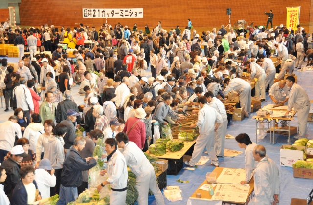 地場の農産物などが並ぶ会場で、大勢の人が繰り出した柏崎農業まつり=19日午前、市総合体育館 (2013/10/21)