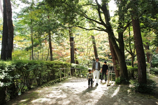 モミジの葉が色づき始め、訪れる人も日ごとに増えている松雲山荘 (2013/10/25)