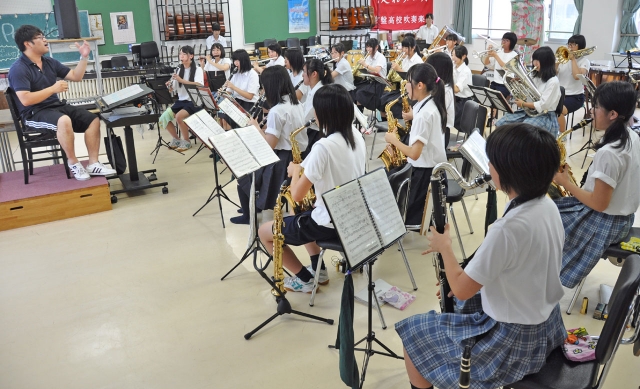 西関東吹奏楽コンクール出場に向け、練習に励む常盤高吹奏楽部=同校音楽室 (2013/09/14)