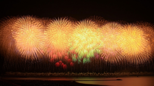 光と音の?響宴?で楽しませた海の大花火大会=26日夜、中央海岸 (2013/07/27)