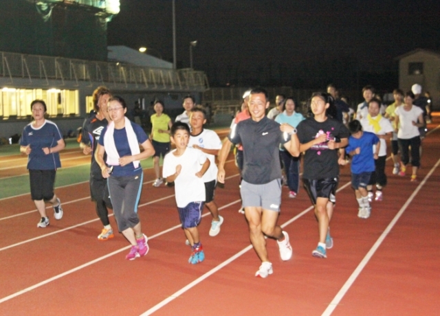 ナイターで行われた「初めてのランニング講座」=市陸上競技場 (2013/08/03)