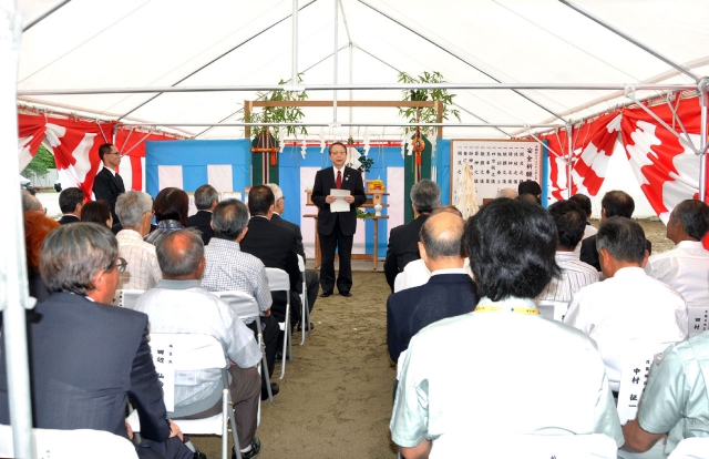 中鯖石コミセン集会棟改築の安全祈願祭=19日、市内加納地内 (2013/07/19)