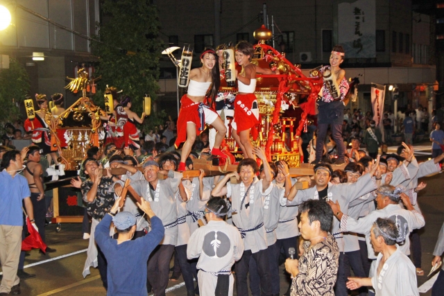 市民の心意気を示した「たる仁和賀」。市民プラザの本部前で威勢の良いもみ合いを繰り広げた=25日 (2013/07/26)