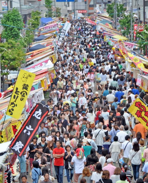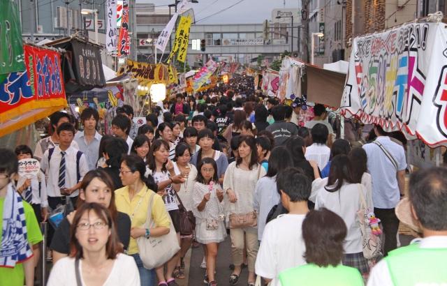 最終日のえんま市のにぎわい=16日午後6時ごろ、市内東本町1 (2013/06/17)