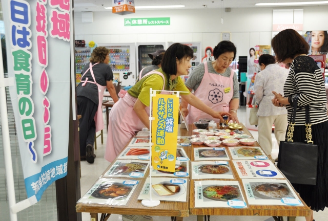 「食育の日」をPRした市食生活改善推進員協議会のイベント=18日、イトーヨーカドー丸大柏崎店 (2013/06/19)