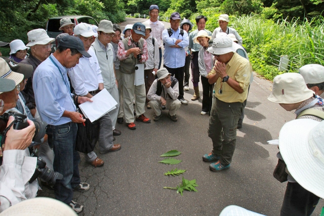 50人が参加した柏崎産・新種アザミの観察会=23日、市内上米山地内 (2013/06/24)