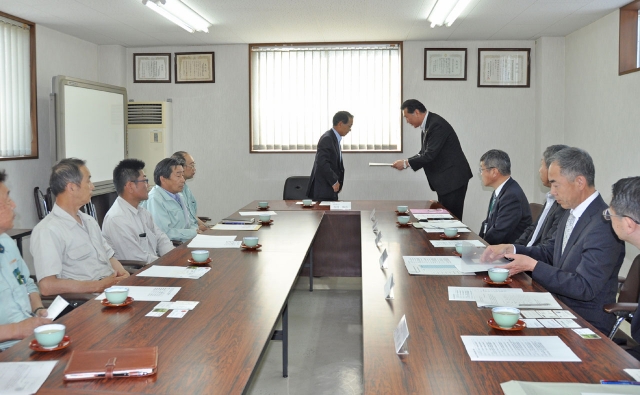 田尻工業団地協同組合の吉村理事長(正面左)に求人の要請書 (2013/06/07)
