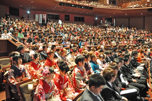 アルフォーレで初めてとなった新成人フェスティバル。若さと笑顔があふれた=3日、大ホール (2013/05/04)