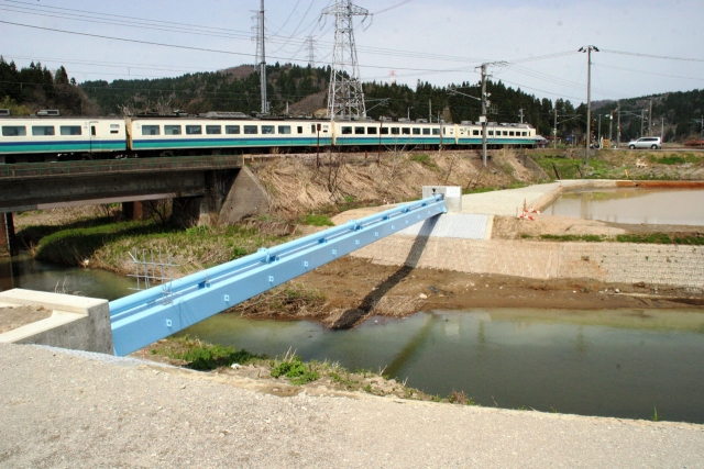 農業用水事業で長鳥川を横断する水管橋 (2013/05/07)