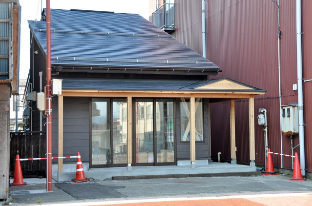 えんま通りのにぎわいゾーンで完成した「まちの駅えんま」 (2013/05/08)