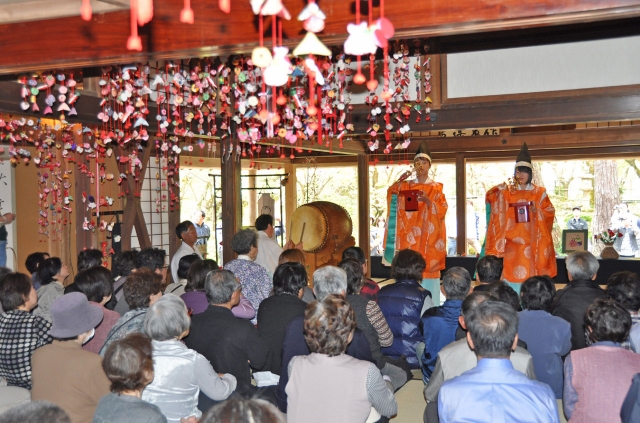 つるしびな飾り展の最終日に行われた神楽舞の披露=6日、飯塚邸 (2013/05/09)